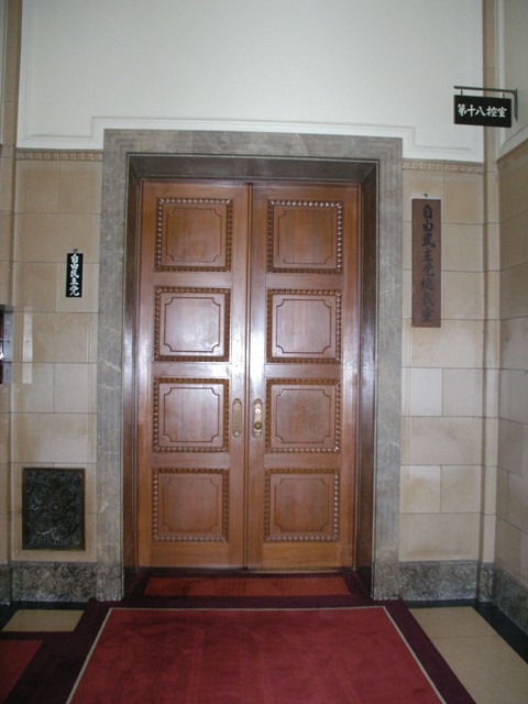 自由民主党総裁室です。この下に、総理大臣の部屋が別のあるそうで、この横にエレベーターがあるので行ったり来たりしているそうです。もちろん今は、安部さんが使用しています。