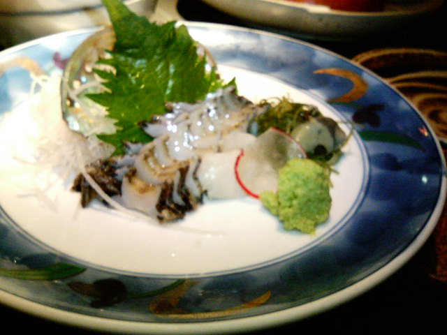 あわびの刺身は少し小ぶりですが、この値段だとしょうがないと思います。なんといっても、あわびは食べた時の食感が管理人は好きです。