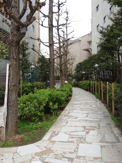 モザイク状の石畳の遊歩道になっています。この遊歩道に、隣接して新宿の「宝」新宿ゴールデン街があります。
